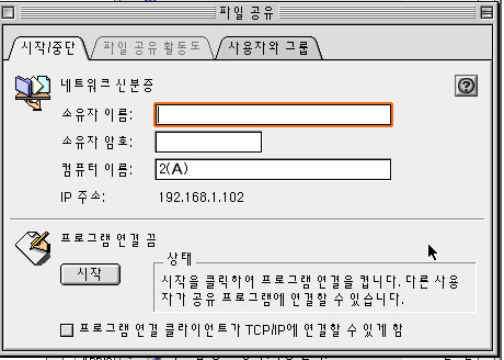 조절판에 있는 파일공유에서 소유자이름을 치면 '프로그램 연결을 사용하기 전에 소유자 이름을 입력해야 합니다.'라는 문구가 뜨는데요. 소유자 이름 그대로 쳐도 마찬가지의 메세지가 나오며 화면에서 타이핑한 이름이 곧바로 없어지거든요. 어떻게 해야 할까요? 그리고 파일공유 활동도를 클릭하려면 비활성상태로 되어 있거든요. 아시는 분 부탁드립니다.