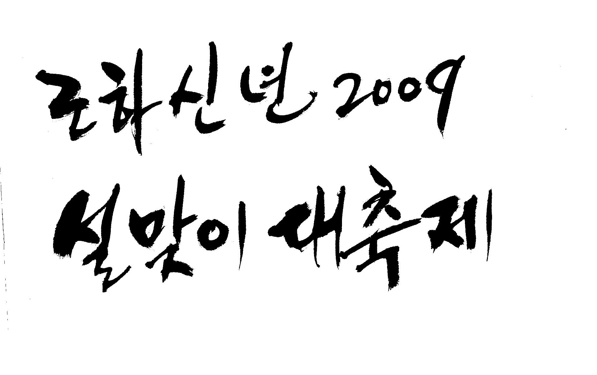 근하신년 2009 설맞이대축제 캘리 부탁드려요. 김철호 일반 3 16263 2009.01.14 10:45 > > A3 전단지 타이틀로 쓰려고 하는데요. > > ''근하신년 2009 설맞이대축제'' 캘리 부탁드립니다. > > 많은도움이 되주셔서 감사합니다. > > 유용하게 쓰세요..