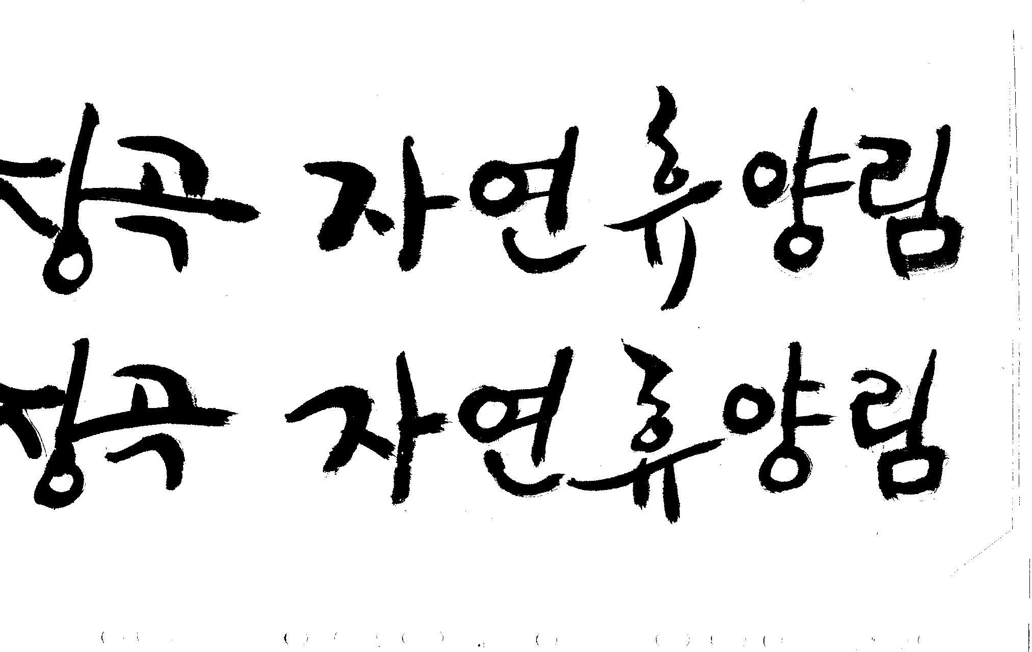 캘리 부탁드려요~ 김철호 일반 1 9508 2008.12.25 23:24 > > 홈페이지 시안 작업중인데. > 메인으로 들어가는 폰트를 명조체로 넣었는데 좀 딱딱한 느낌이 들어 > 캘리로 쓰면 느낌이 좋을것 같아서 부탁드리게 됐습니다. > [장곡 자연휴양림] 이구요. > 홈페이지 시안으로 채택되면 결과물 보여드릴께요^^ > 추운겨울 감기 조심하시고 > 즐거운 크리스마스 되세요! > 감사합니다.. 유용하게 쓰시길... 글자수가 많아서 스캔이 잘렸네요.. 헷갈려서 중복되게 올라간것이 있을것인데.. 맞춰서 편집하세요..