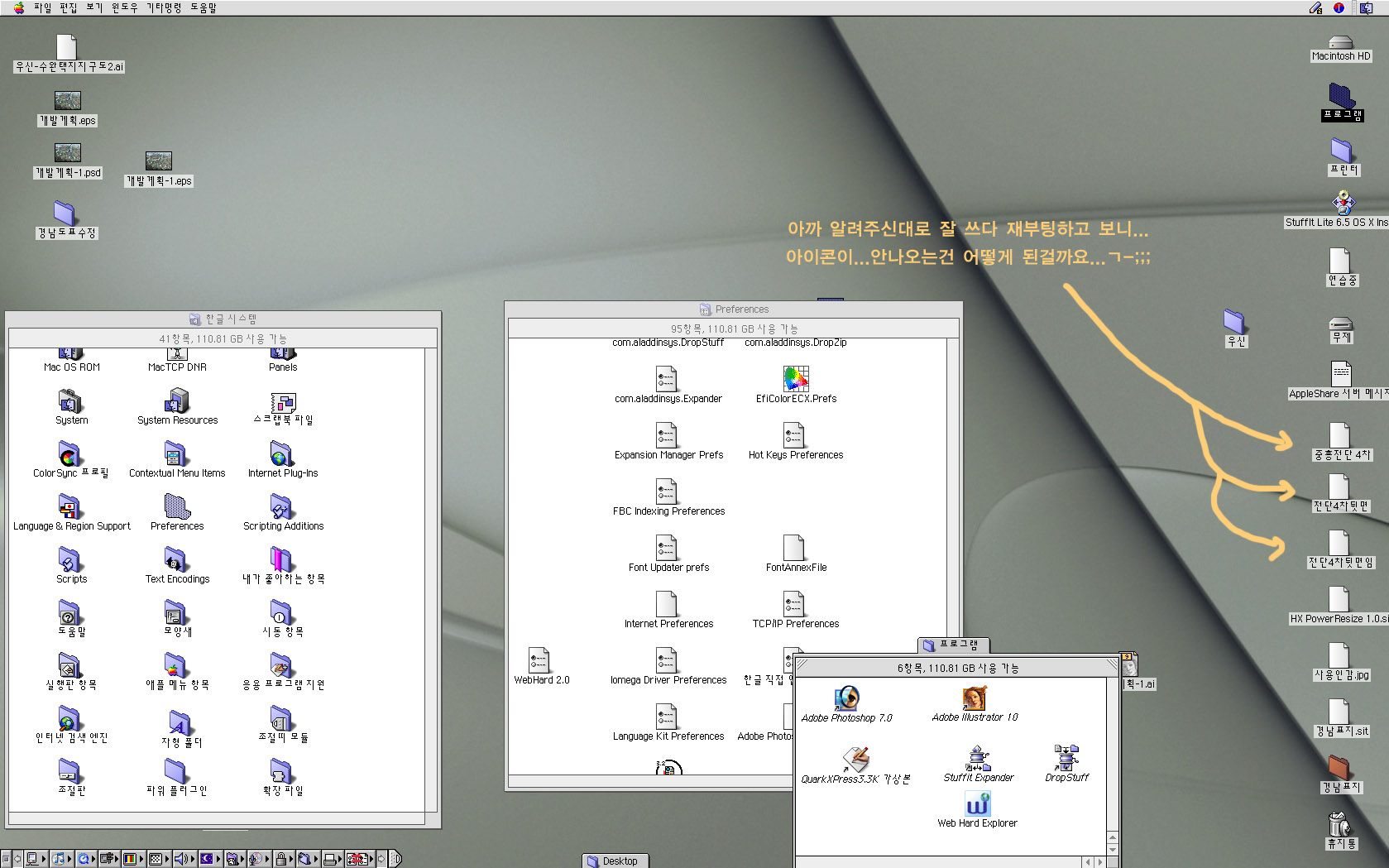아까 알려주신대로 조치하고 작업후 쉴겸 재부팅했더니???